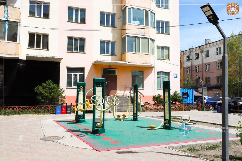 Сүхбаатар дүүргийн 9 дүгээр хороонд хүүхдийн тоглоомын талбай бий болгох, явган хүний зам талбайн шинэчлэлт, сандал, сүүдрэвч, хогийн сав байрлуулах, гэрэлтүүлэг суурилуулах зэрэг ажлууд,